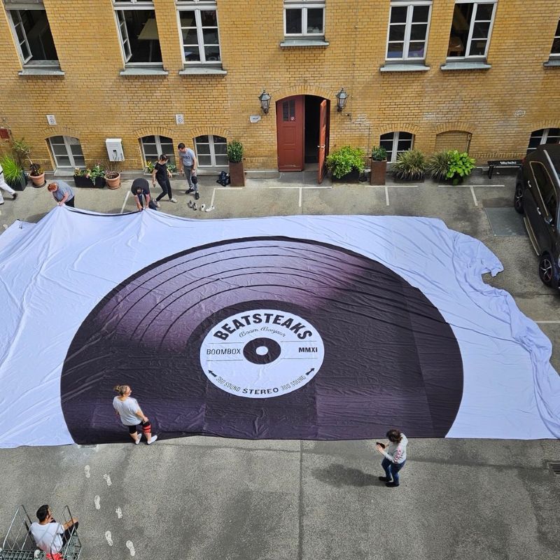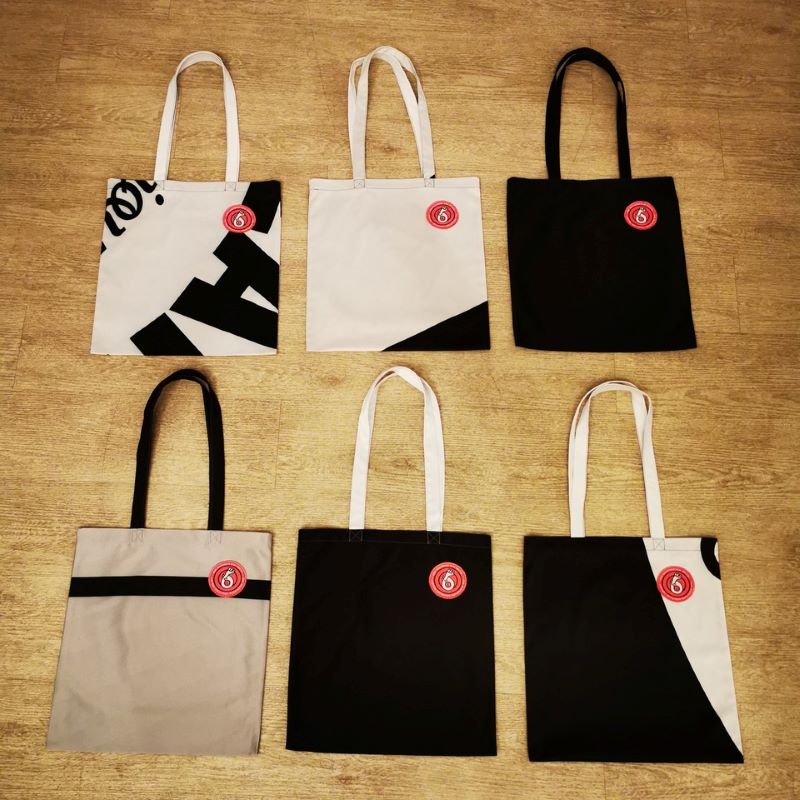 Wir haben in den letzten Monaten alte Backdrops, die bei unseren Konzerten auf der Bühne hingen, zu schmucken Tragetaschen verarbeiten lassen.