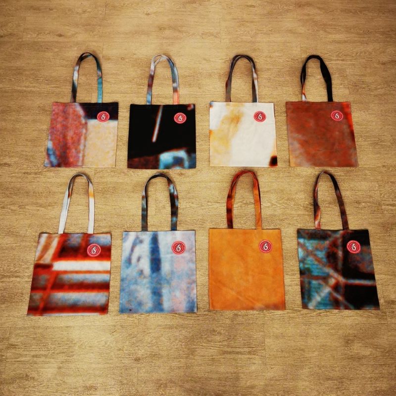 Wir haben in den letzten Monaten alte Backdrops, die bei unseren Konzerten auf der Bühne hingen, zu schmucken Tragetaschen verarbeiten lassen.